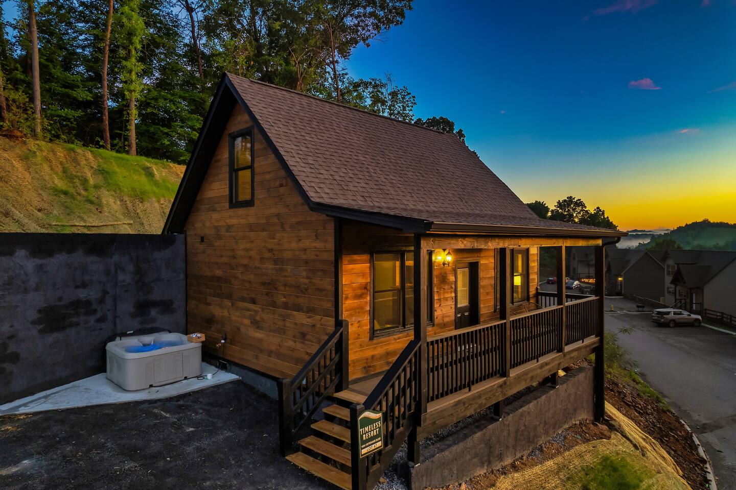 Heart of the Smoky Mountains! New wood scent, clean, and adorable cabin for couples or families! Cades Cove, Trails, ATVs, Coasters, Rafting, Theaters, Caves & The Great Smoky Mountains! Perfect Central Spot Near Pigeon Forge, Gatlinburg, all the region's top attractions. Fun for all ages. Or relax and enjoy games, arcade, & sunset. New hot tub enclosure for privacy! Property is in a resort and offers a prime location to big 4, easy access, no steep roads.